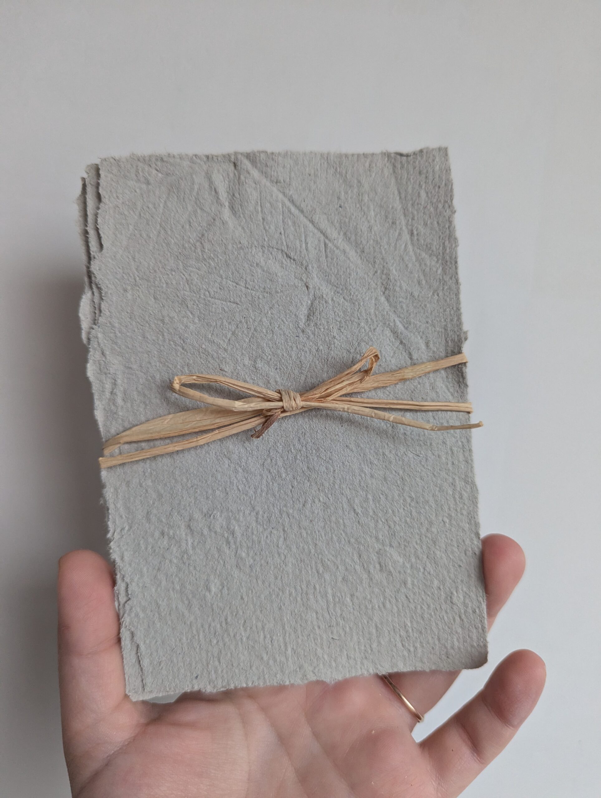 A papírt a természet szabálytalansága teszi különlegessé: a merítés során keletkezett, természetes szélét meghagytam, így minden lap saját karakterrel bír. Minden csomag öt darab egyedi kártyát tartalmaz, amelyek tökéletesek lehetnek üdvözlőkártyának, köszönőkártyának, vagy akár kreatív ajándéknak.
